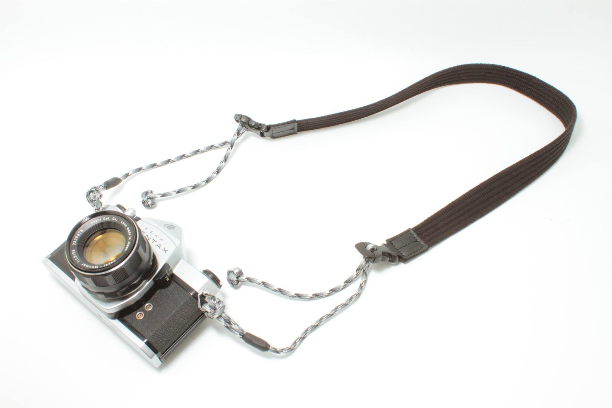 美しさと機能性が備わっているパラコードストラップは、左右双方で長さ調整ができることに加え、片側にはカメラの着脱が簡単にできるバックルを採用。パラコードの先端部分は自然にほどけることがなく、長さ調整時につまみやすい「セルティックボタン・ノット」を職人が一本一本、丁寧に結んでいます。