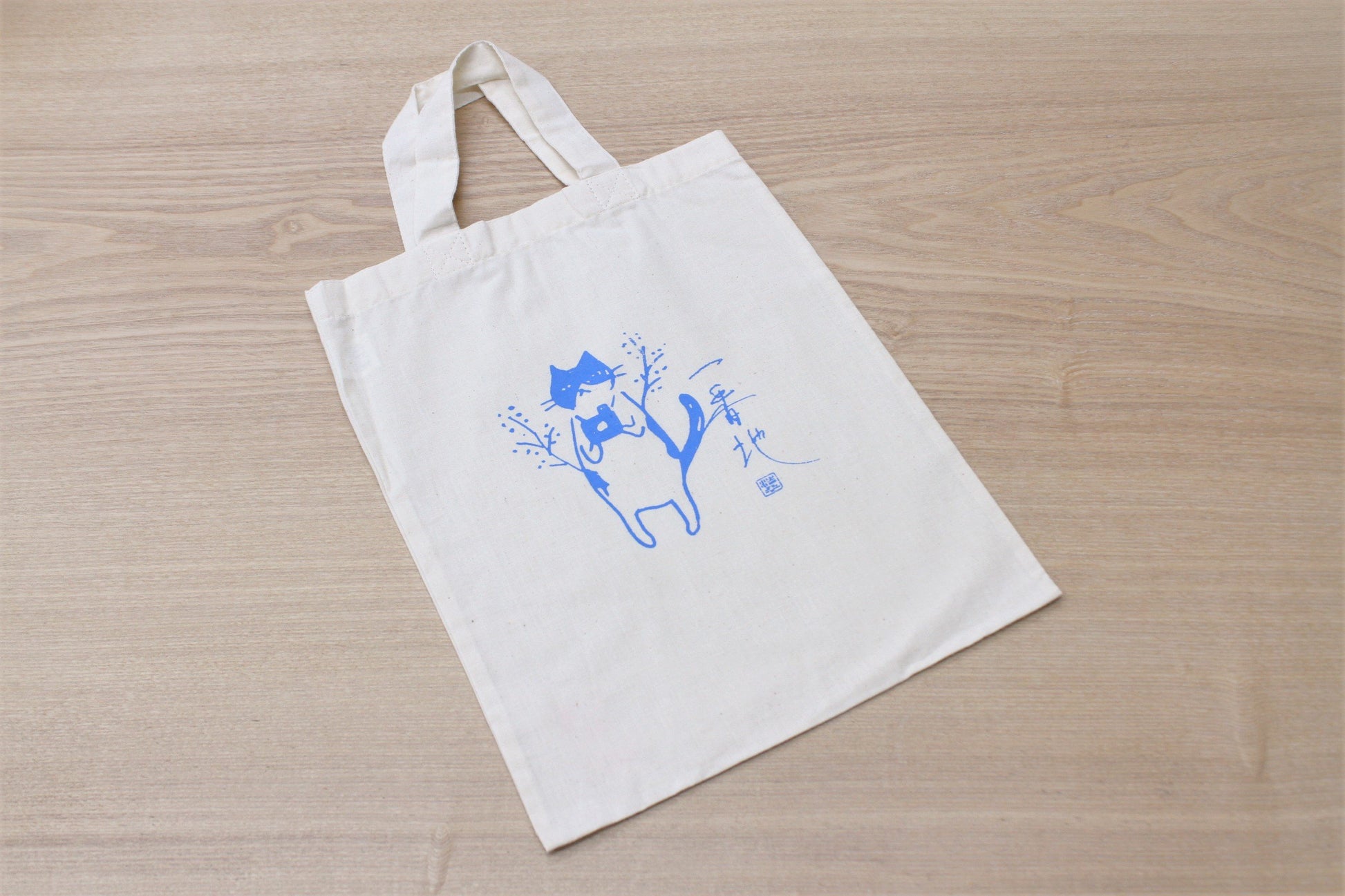 ミニトートバッグ A4サイズ カメラ猫 空色